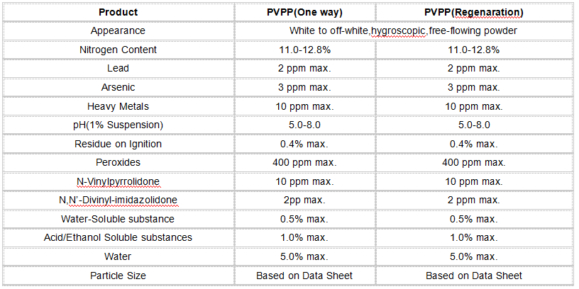Product Properties: PVPP is hygroscopic,insoluble in water and all other common solvents,but it swells rapidly in aqueous solutbition without any gel froms.